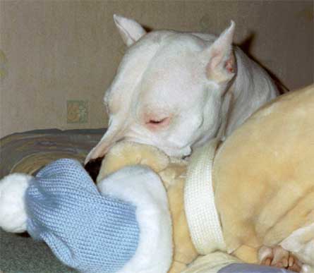 Mes maîtres auraient préféré un doguito auxlongues oreilles car ils ont toujours été contre toutes ces souffrances inutiles. Une fois arrivée dans ma nouvelle maison, ma maîtresse m'enleva ce pansement qui me chatouillait plus qu'autre chose. Le temps et le calcium ont permis à mon oreille de se redresser.